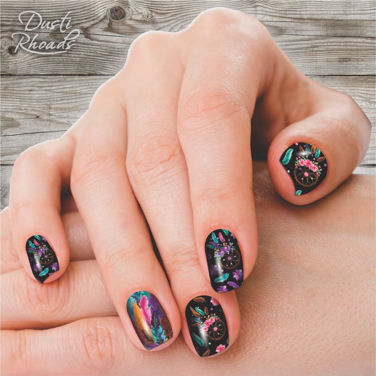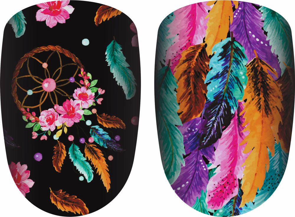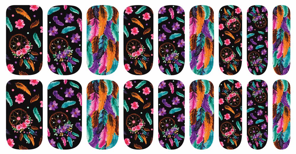These real nail polish strips feature dream catchers and feathers in vibrant colors. Each package comes with 18 strips in 9 different sizes to perfectly fit your nails.