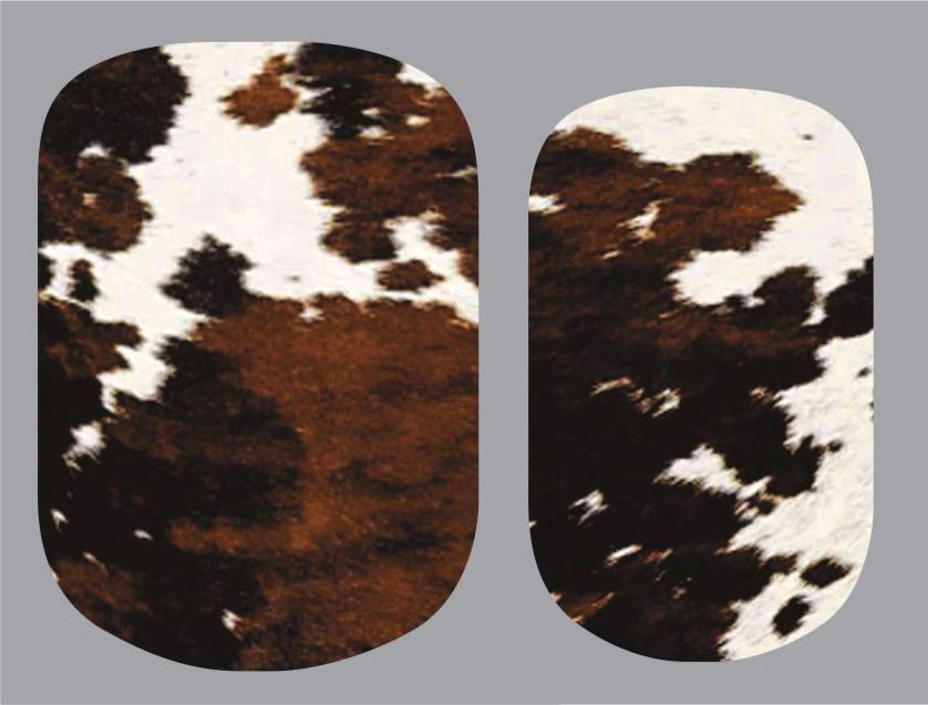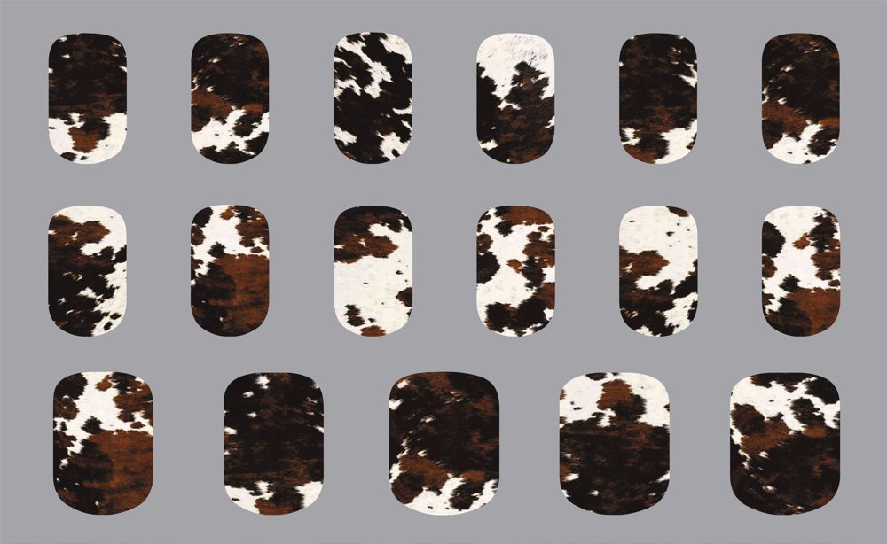 Cattle Drive has 17 real nail polish strips that feature a brown, black and white cowhide print.