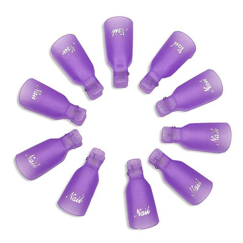 This set of 10 plastic, purple nail clips are the perfect way to remove your Dusti Rhoads nail polish strips without damaging your nails. Simply soak a cotton pad in nail polish remover, place one in each nail clip and then place a nail clip on each finger nail. Wait 3-5 minutes and then wipe your nail clean. (See instructional pictures)