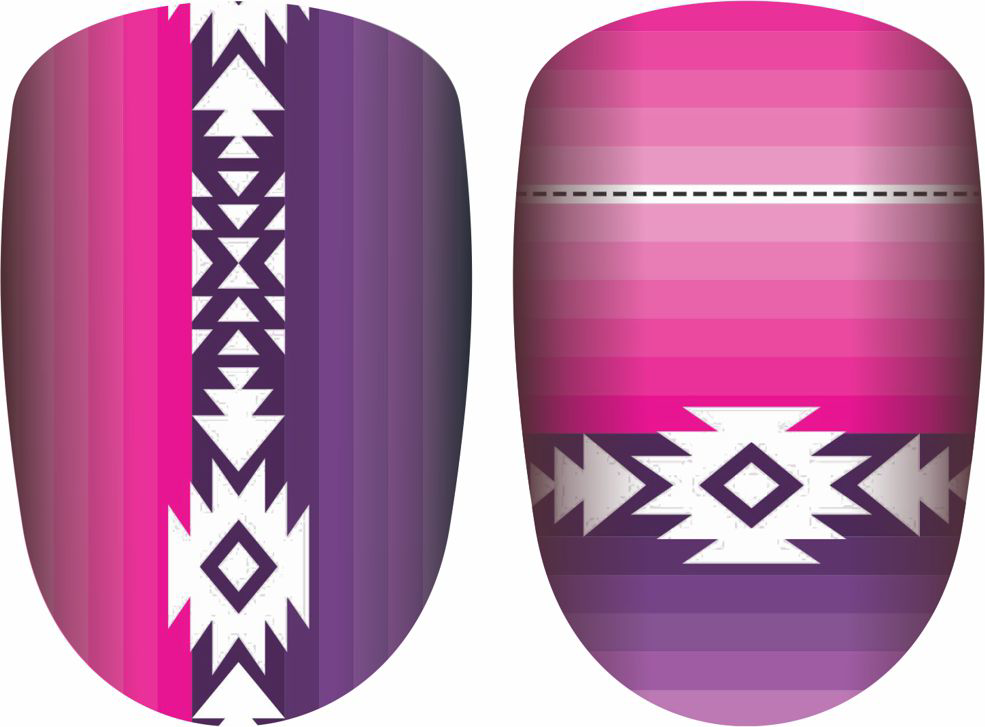 These Sierra Vista real nail polish strips feature vibrant pink and purple hues with striking white Aztec print! Each package comes with 18 strips in 9 different sizes to perfectly fit your nails.
