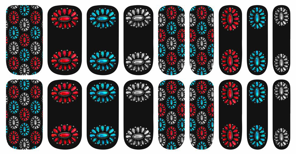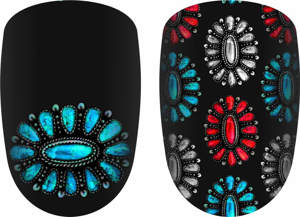 Spirit Of The West nail strips feature beautiful conchos in red, gray, and blue. These would be fun to mix and match with other Dusti Rhoads styles!